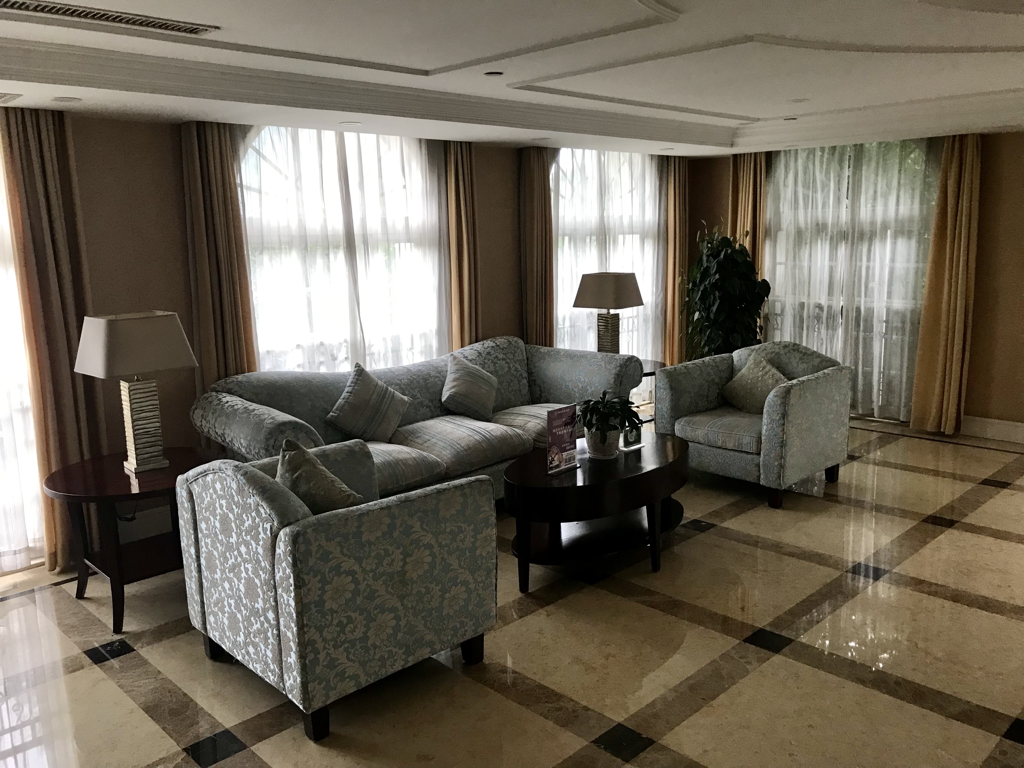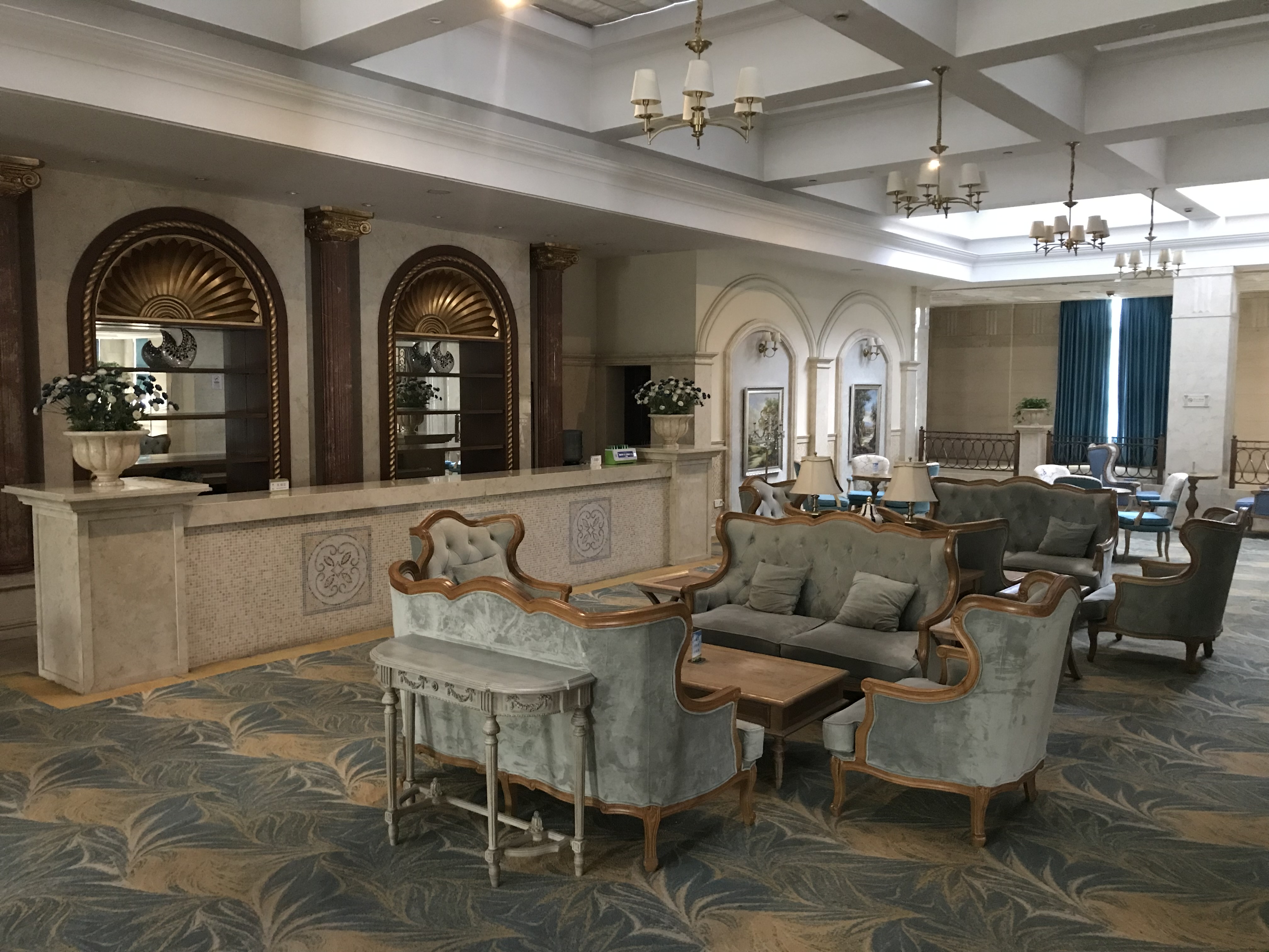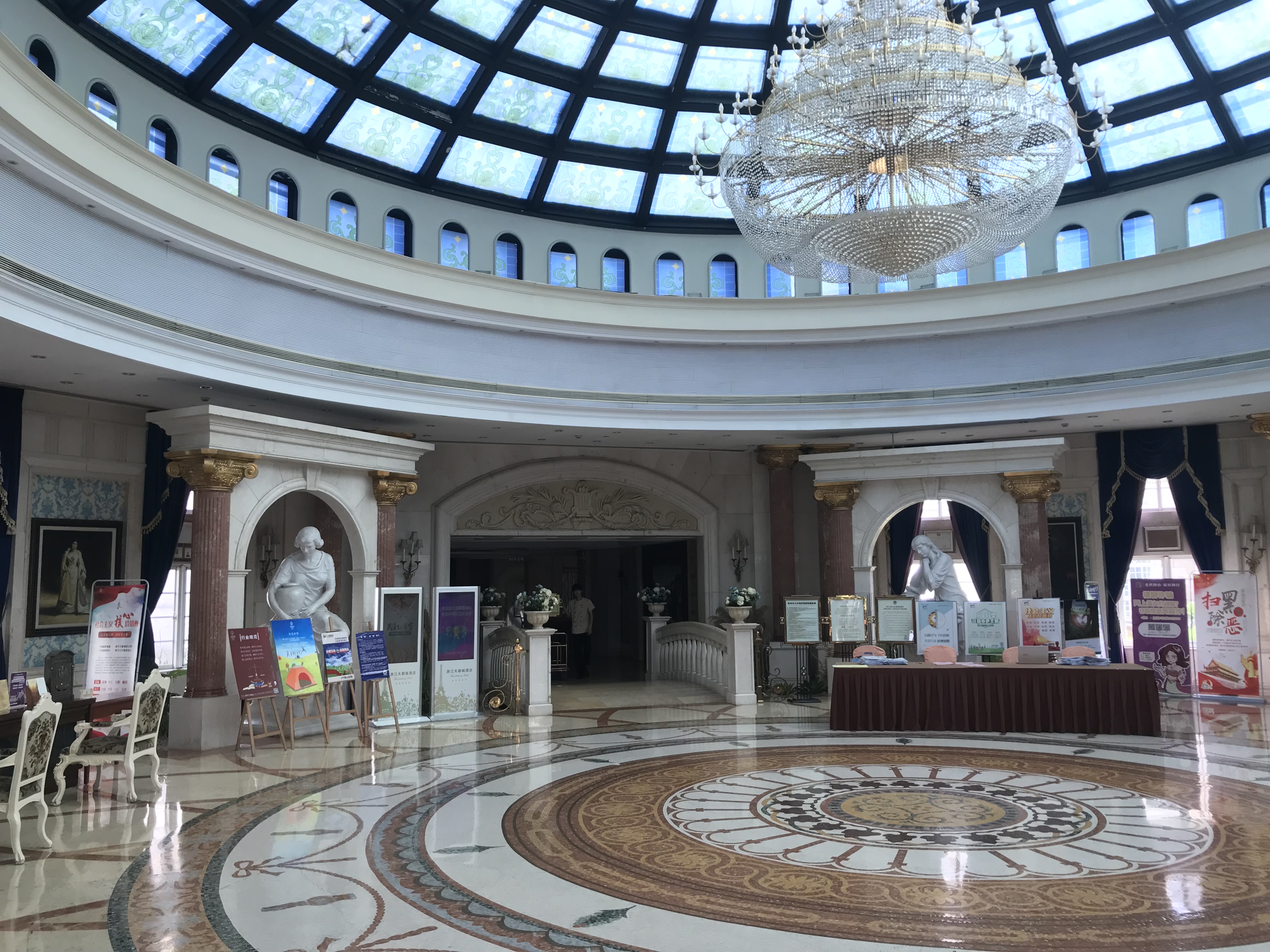 Tiandu Cheng est gérée par la société Zhejiang Tiandu Industrial Co., Ltd., une filiale de Guangsha Holding Group Co. dont le siège social se trouve à côté de l’hôtel. À l’intérieur, on reste dans une ambiance des plus luxueuses. Jusqu’à maintenant, le fait d’être occidental me facilitait beaucoup d’interactions avec les habitant.e.s et les travailleur.euse.s. Ici, les questions sont particulièrement mal accueillies, les réponses des plus froides et finalement, le réceptionniste me fait comprendre que je le dérange et décide de m’ignorer complètement, comme si je n’étais pas là.