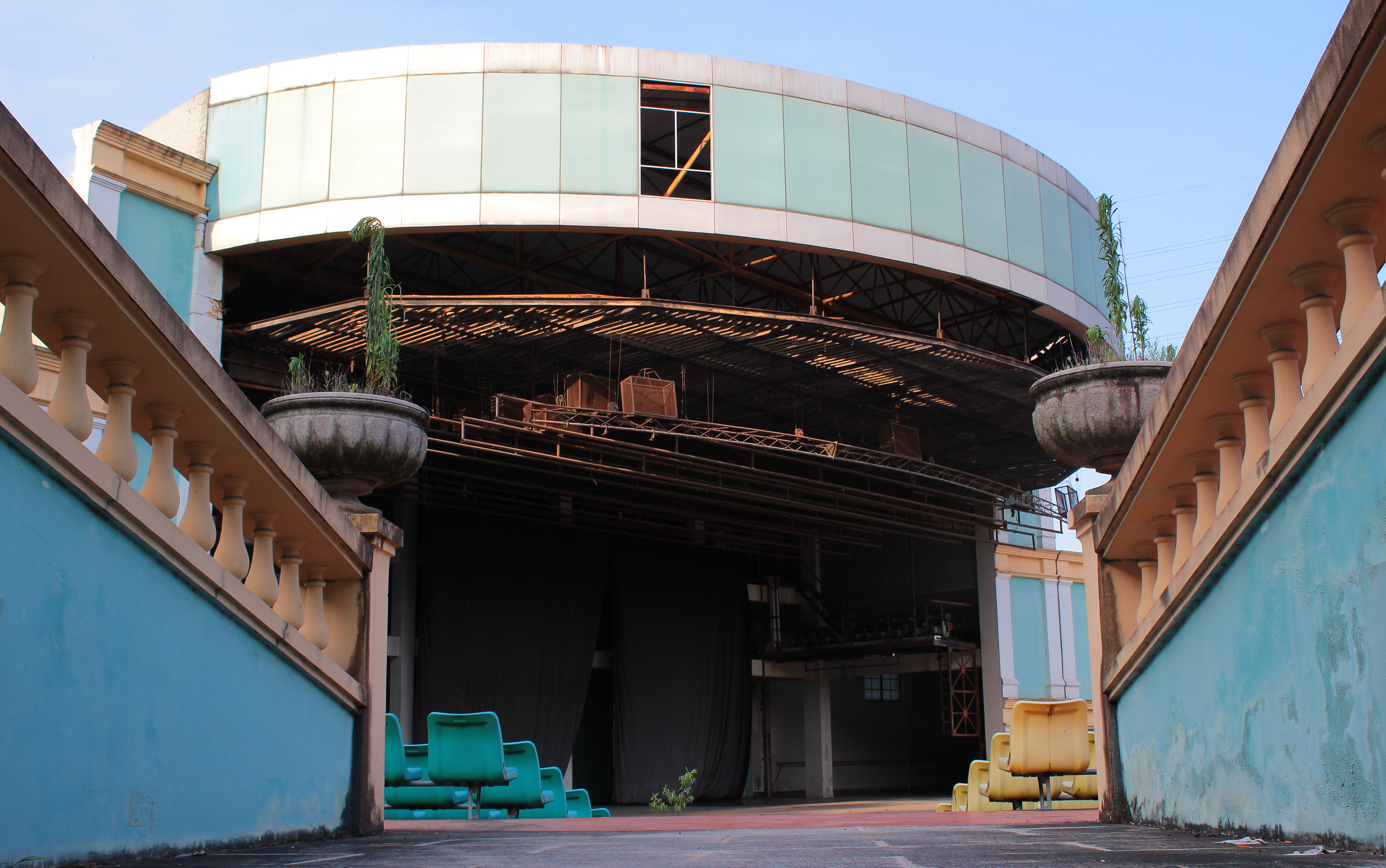 L’amphithéâtre est toujours debout mais à l’abandon. Lors de ses périodes les plus fastes, il accueillait plus de 2000 personnes et la scène était assez grande pour réunir 300 acteur.rice.s.