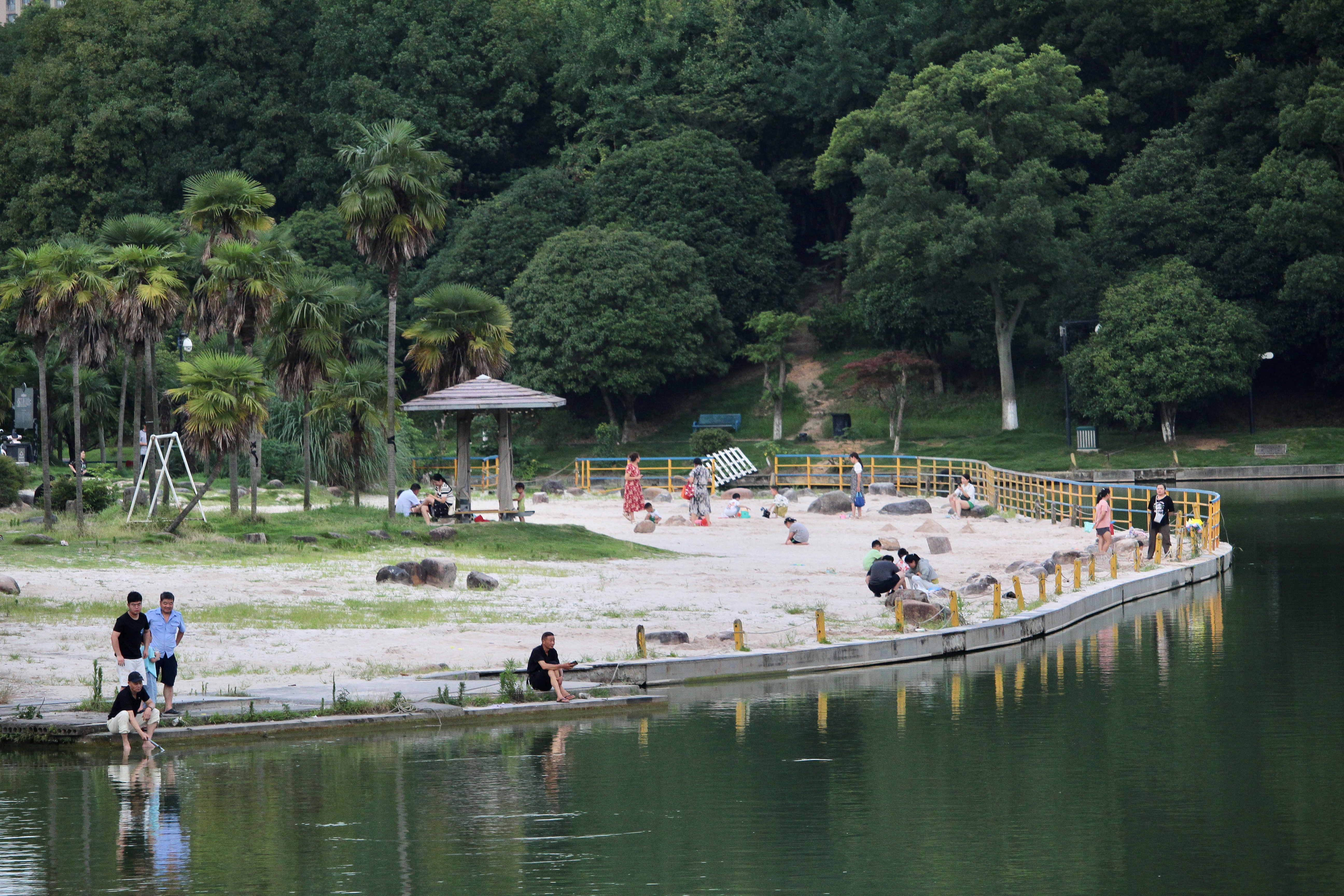En sortant du village, j’arrive sur une plage de sable. Un lac artificiel a été aménagé et des cygnes y ont été incorporés. Un fait troublant est qu’une barrière se dresse et empêche de se baigner.