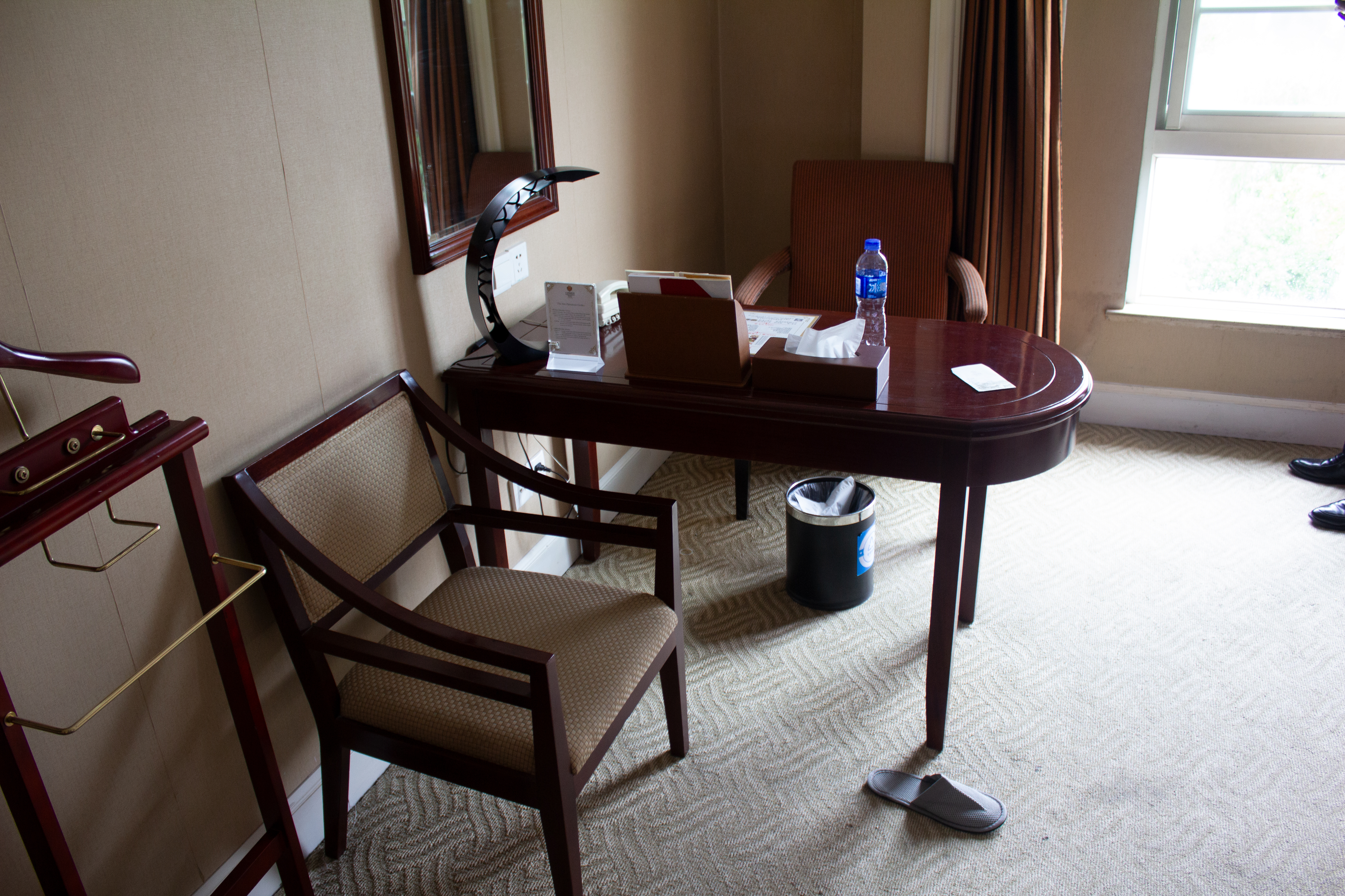 Pour ma création artistique, j’avais besoin d’être pris en photo dans une des chambres. N’ayant pas l’intention de payer pour une nuit d’hôtel et voulant diminuer les risques de me prendre un refus, je me suis fait passer pour un touriste français, dont la copine est restée à Hangzhou et cherchant une chambre pour une nuit en amoureux. La réceptionniste ayant accepté, un homme du nom de Jiahao m’accompagne jusqu’à la chambre. En chemin, nous sympathisons, j’apprends qu’il fait ses études et travaille ici en tant que stagiaire. Il est logé dans les dortoirs à la sortie de l’hôtel mais se plaint de cette situation. L’endroit est surpeuplé, mal entretenu et “abandonné” par l’entreprise… Je passerai voir…