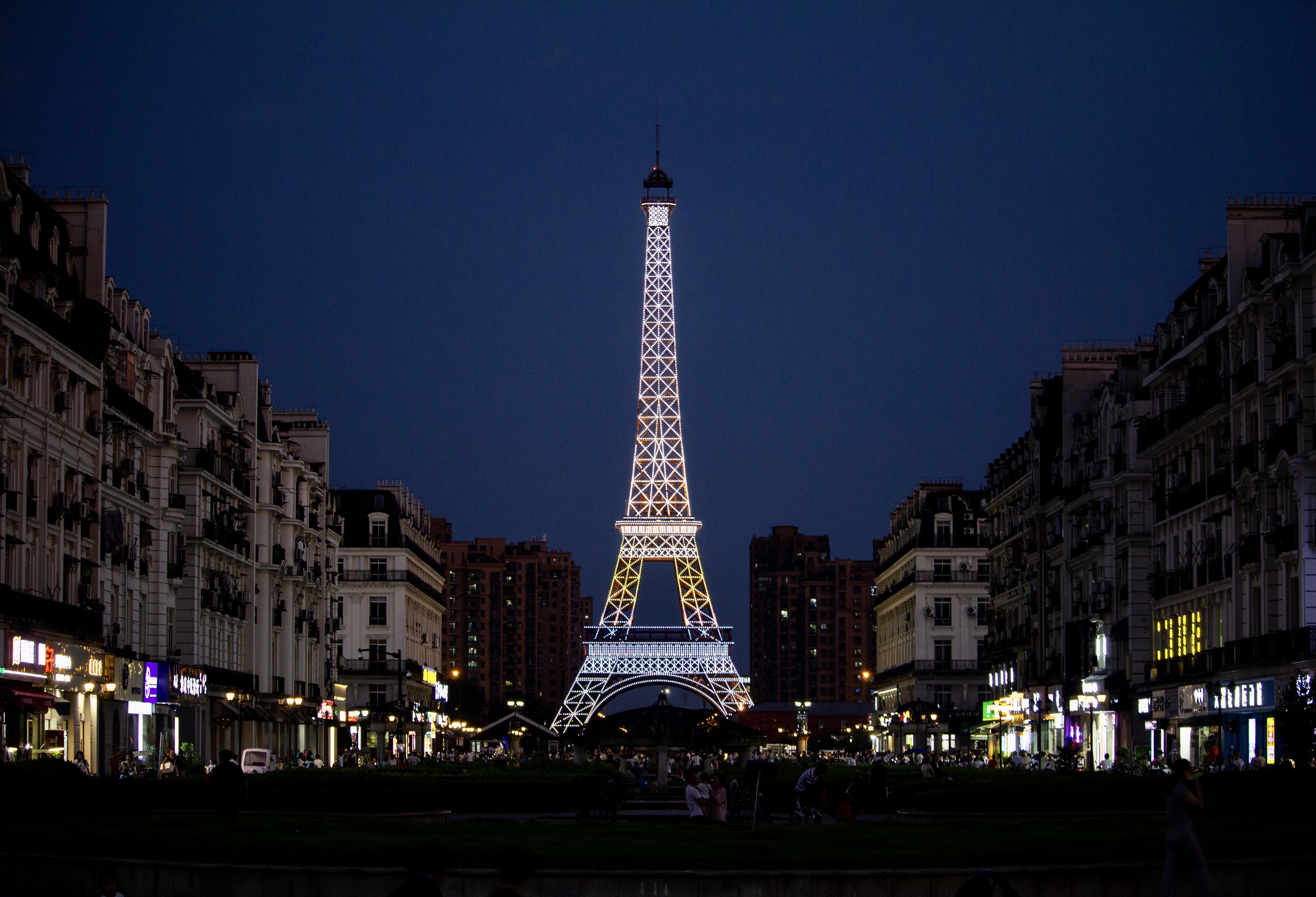 Tiandu Cheng, aussi appelée Sky city, est une reproduction partielle de la ville de Paris d’environ 31 km2 qui a vu le jour en 2007. De nombreuses architectures sont visibles, notamment des immeubles haussmanniens, des jardins à la française, un château ou encore une réplique de la Tour Eiffel de 108 mètres de haut…