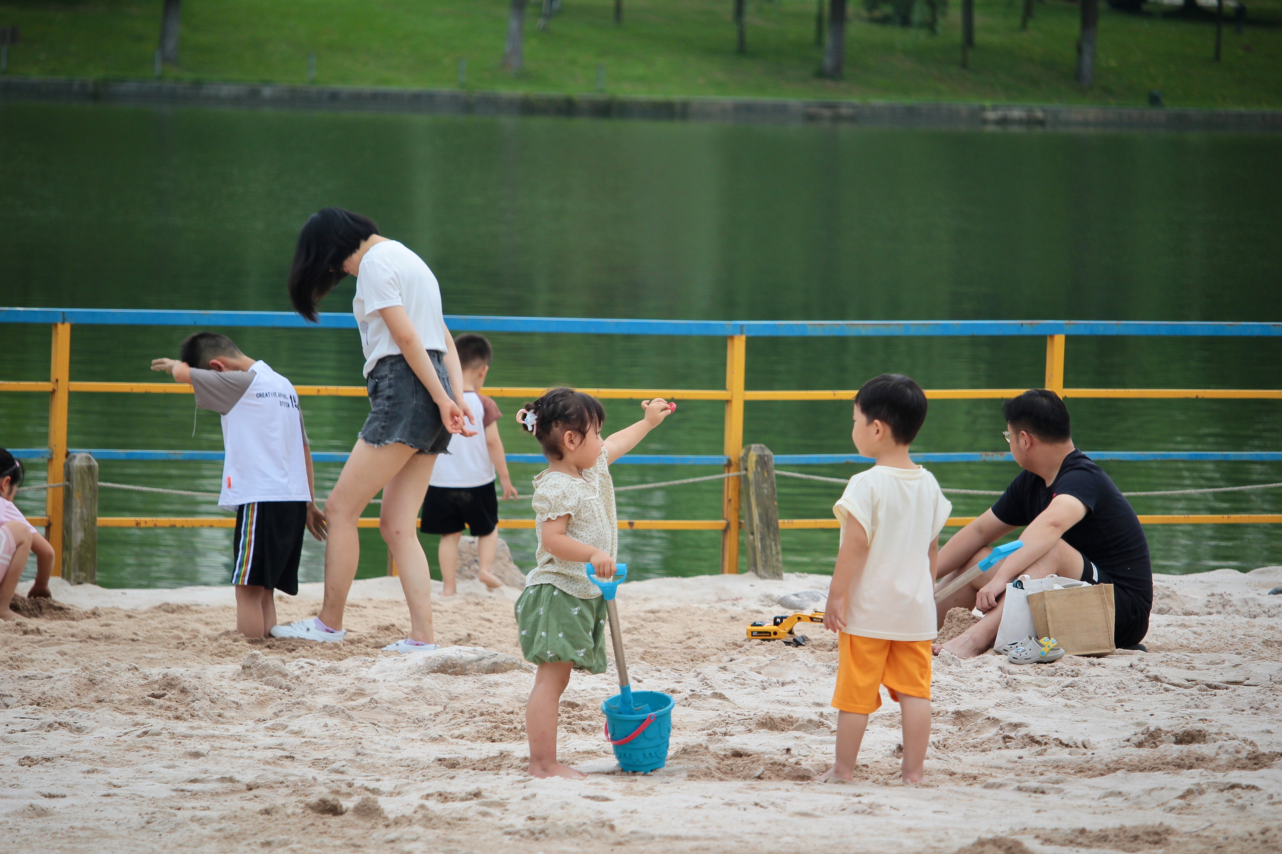 C’est la première fois que je vois autant de monde et de vie dans ce parc. Depuis mon entrée, j’ai vu essentiellement des gens se prendre en photo dans ce décor atypique. Ici, les gens s’amusent et sont détendus, comme si le contexte disparaissait. Les enfants font des châteaux de sable ou creusent pour découvrir des trésors, les étudiants viennent discuter à la sortie des cours et les familles pique-niquent. On peut acheter une glace et siroter tranquillement une boisson à la terrasse de la buvette.